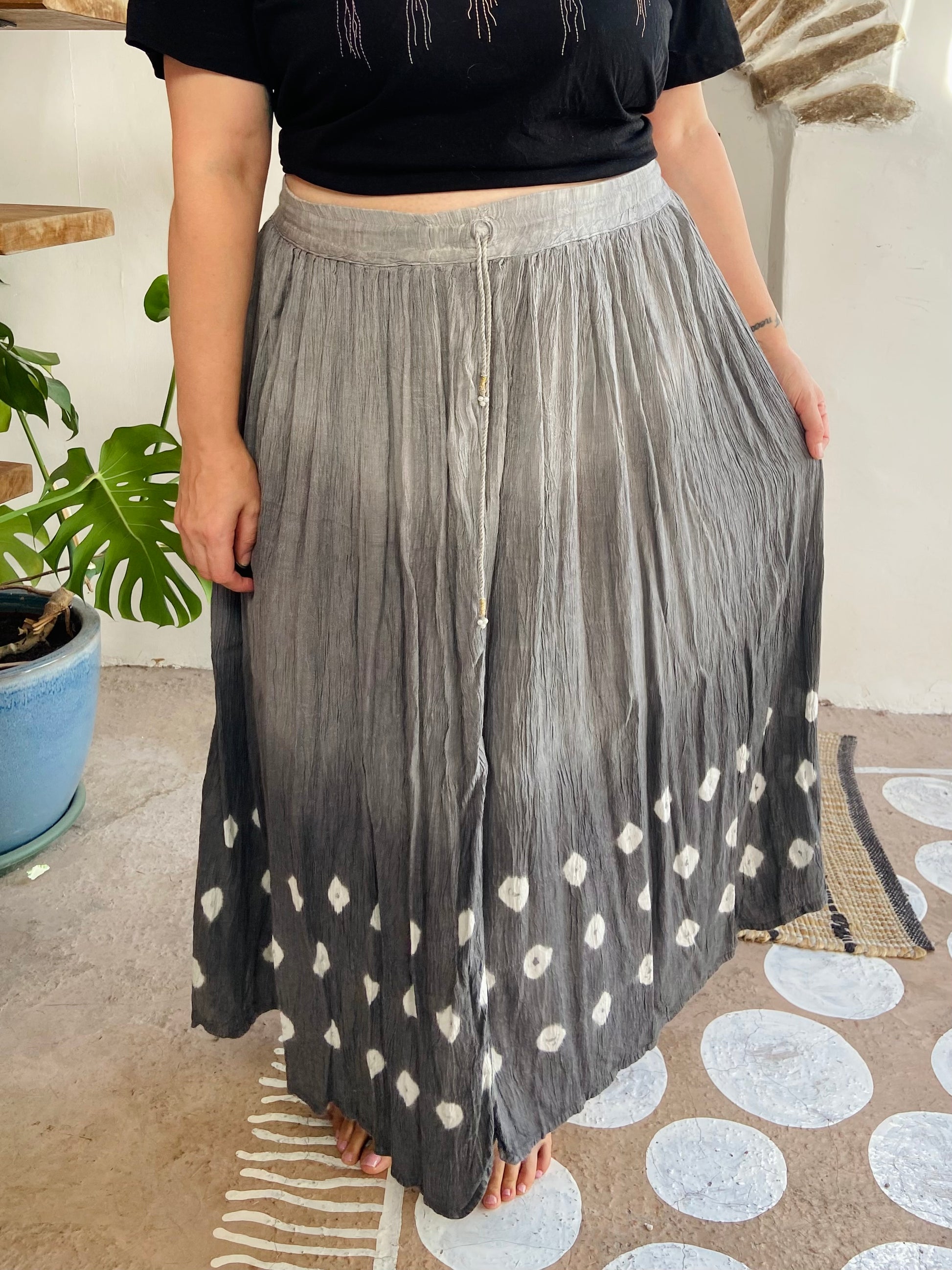 Vintage 90's amazing maxi skirt with a tie dye pattern on the bottom. Elasticated and drawstring waist. Non stretch fabric.